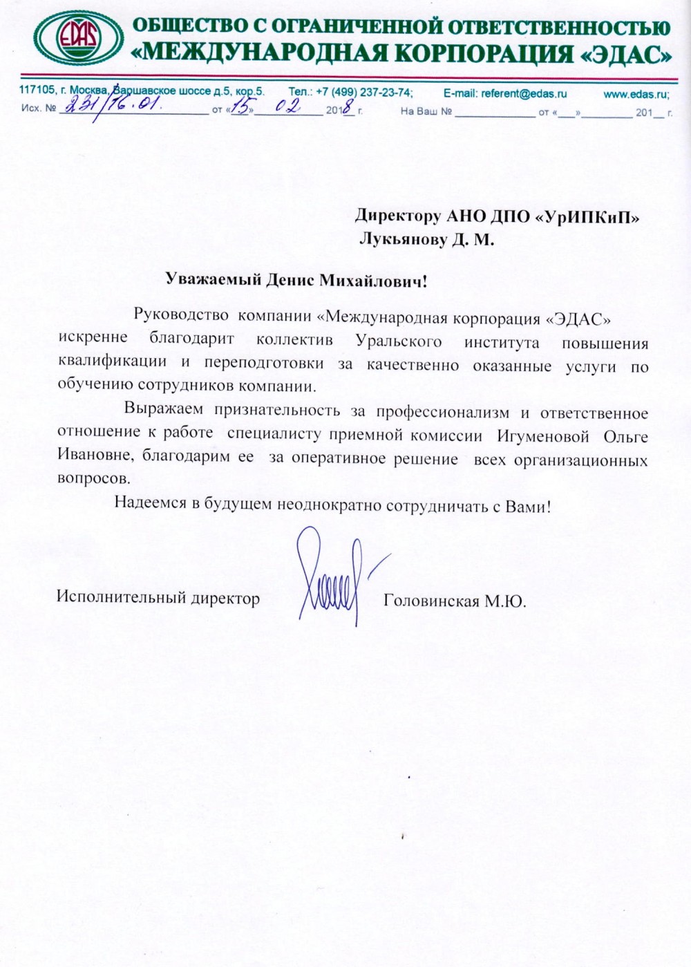130+ благодарственных писем