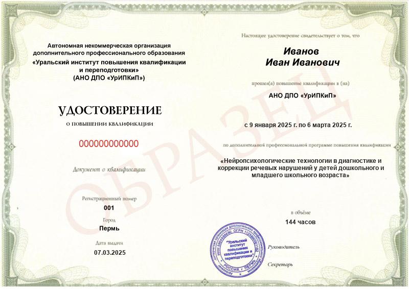 - Повышали квалификацию в АНО ДПО «УрИПКиП» – вам будет выдано удостоверение.