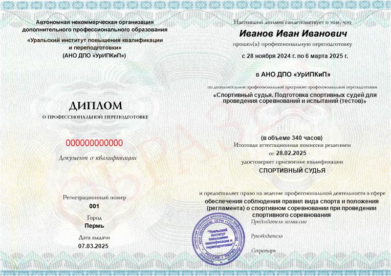 Курс обучения Спортивный судья. Подготовка спортивных судей для проведения соревнований и испытаний (тестов) (340ч)