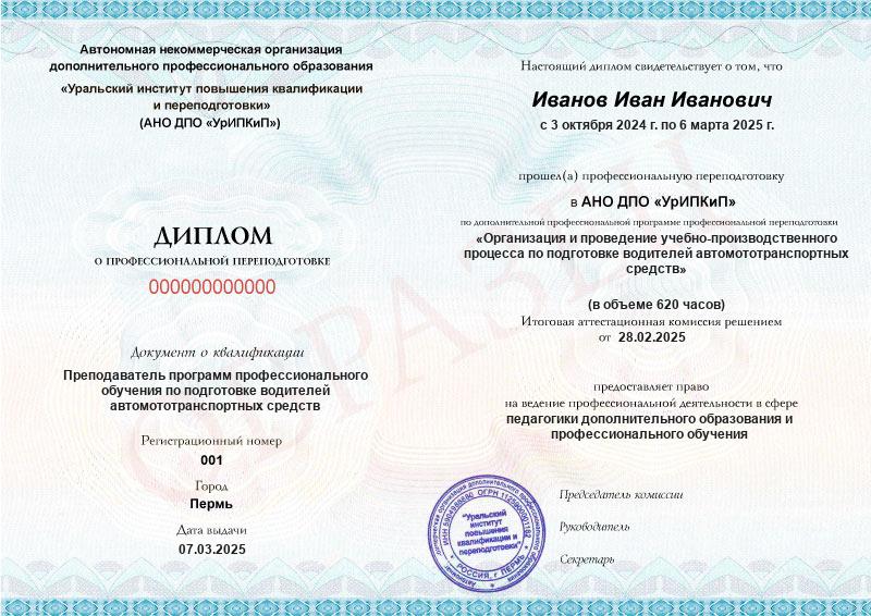 - Образец диплома о профессиональной переподготовке.