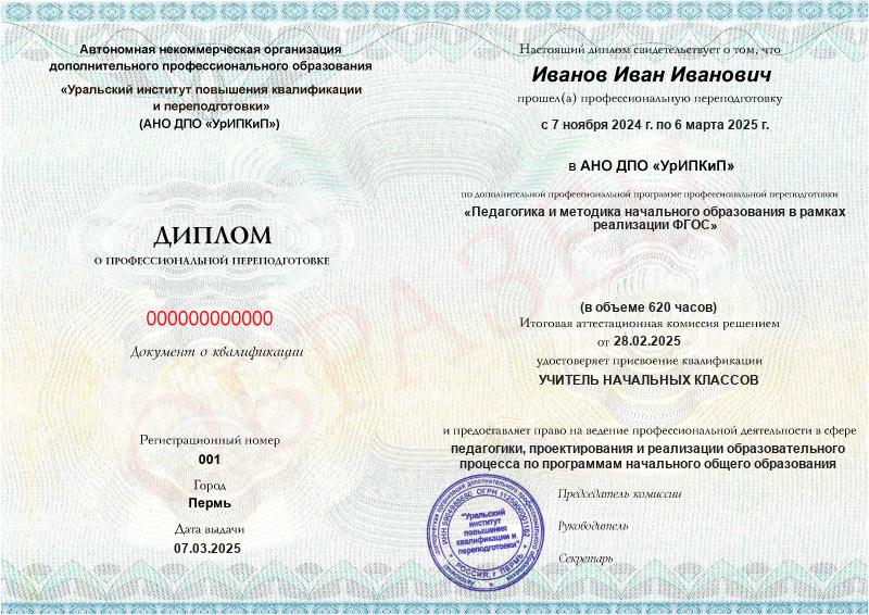 - Образец диплома о профессиональной переподготовке.