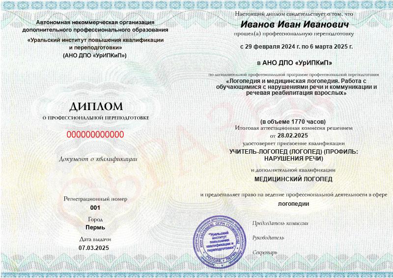 - 2 квалификации: Учитель-логопед (логопед) (профиль: нарушения речи) + Медицинский логопед