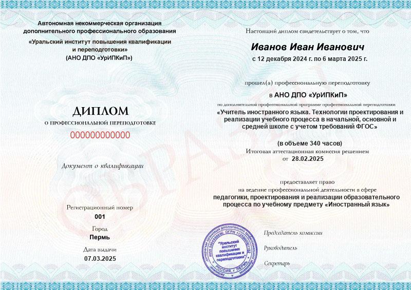 - Образец диплома о профессиональной переподготовке.